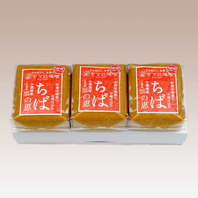千葉県産大豆(フクユタカ)と、千葉県産米(コシヒカリ)、そして地下30mから汲み上げる清冽な地下水を使用し、独自の伝統製法で造りあげた長期熟成のお味噌です。