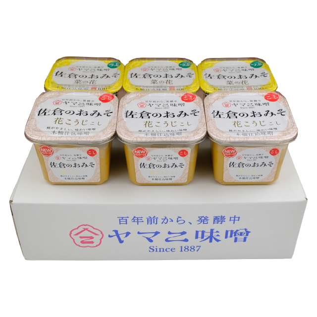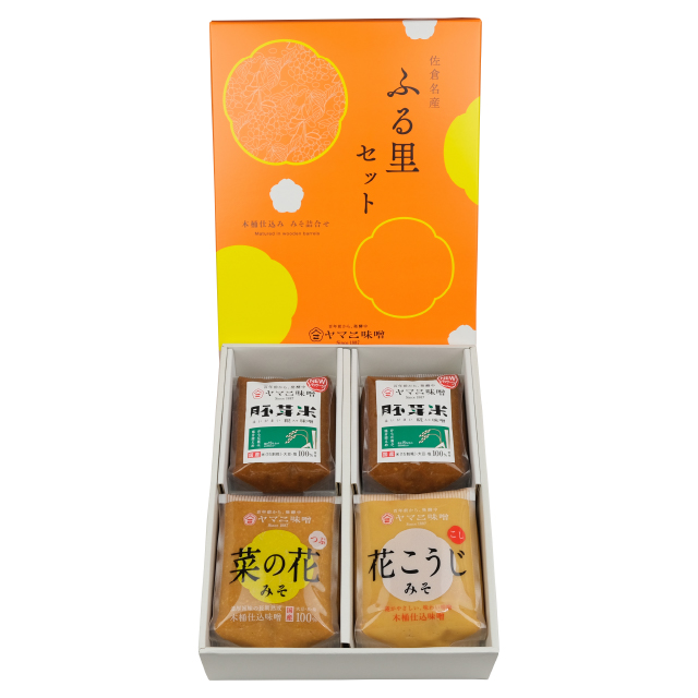 ふる里セット(FH102) 価格:3,780円(税込) 数量 1 2 3 4 5 6 7 8 9 10 ◆花こうじこしみそ(750g)×2 ◆菜の花みそ(750g)×2 ◆胚芽米糀入りみそ(500g)×2