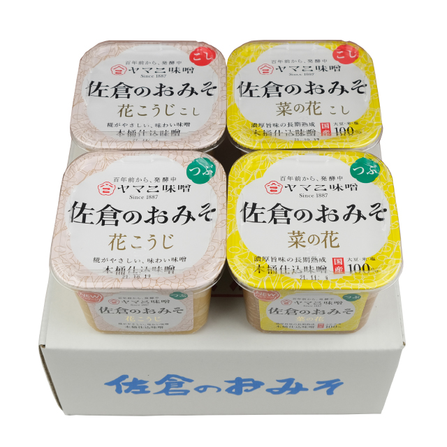 カップみそ詰合せ(K101) 価格:2,160円(税込) 数量 1 2 3 4 5 6 7 8 9 10 ◆花こうじこしカップ(700g)×1 ◆菜の花こしカップ(700g)×1 ◆花こうじみそカップ(700g)×1 ◆菜の花みそカップ(700g)×1