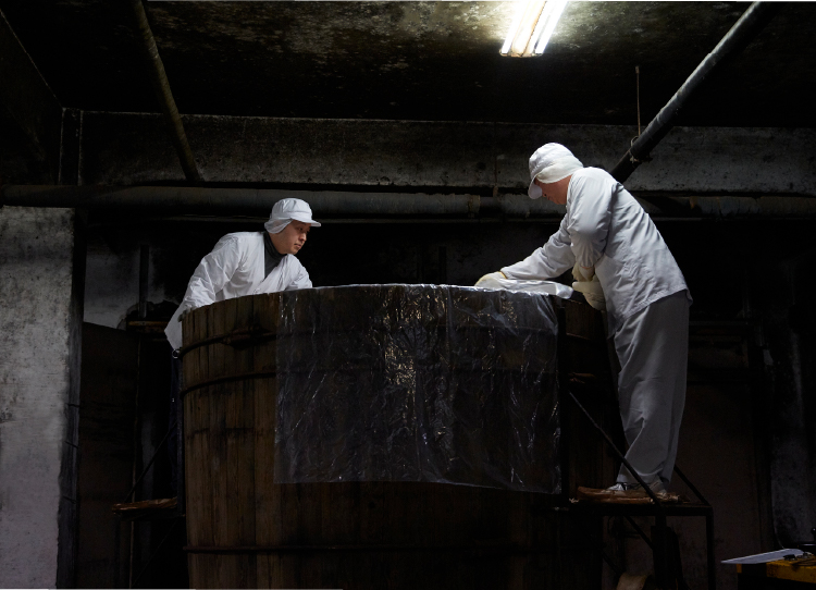 「ヤマ」は、蔵付き酵⺟が沢⼭住む、財産でもある⽊造の蔵の梁を。
