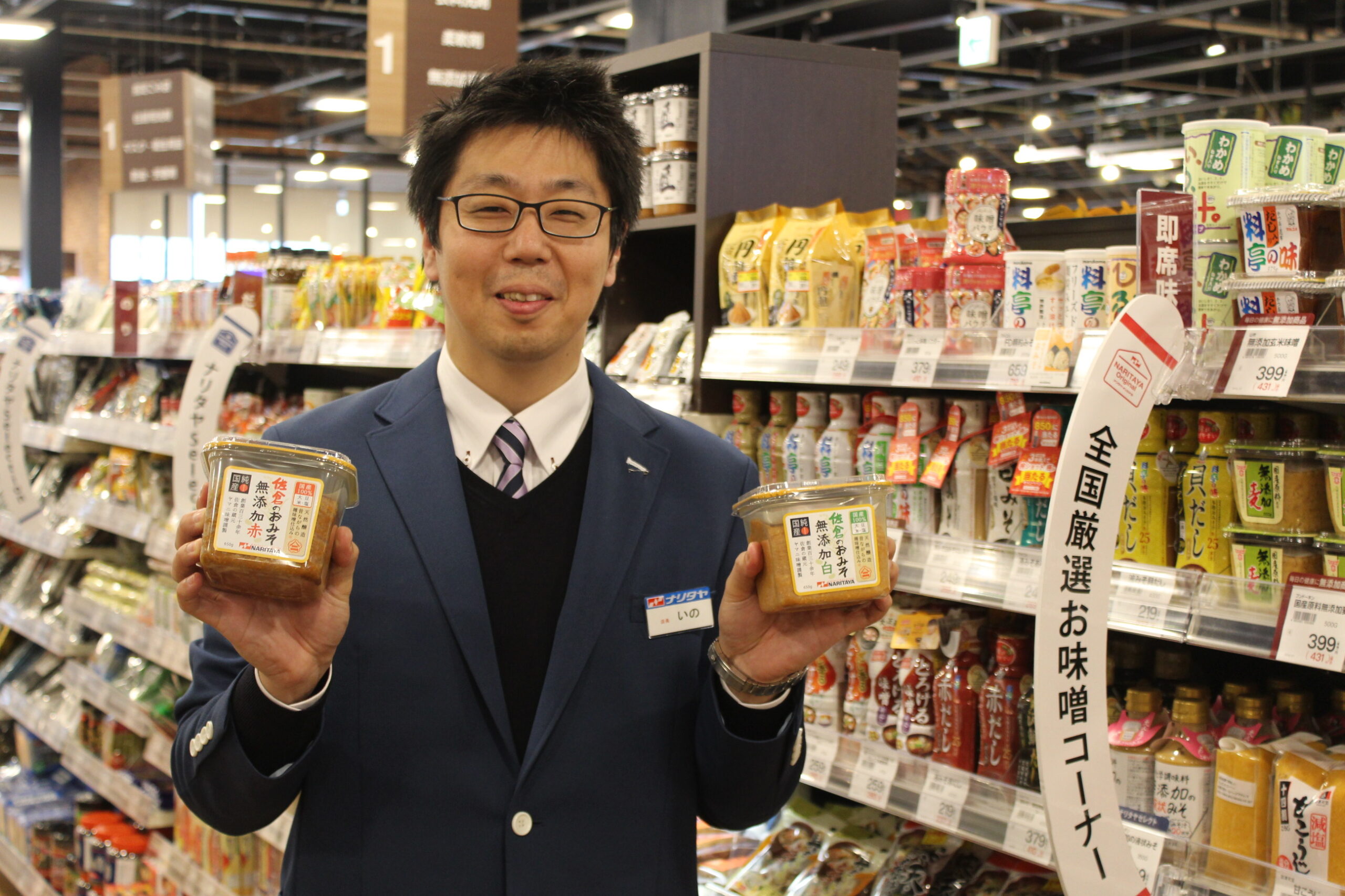 「そうですね…特に数年前からなのですが、お客様はみな『国産ブランド』ということに敏感だと感じますね、あとは、やはり『地の物』に対する愛というのはあると思いますね。さらにヤマニ味噌さんの『無添加』というキーワードには多くの人に受け入れられていると感じます。売れ行きに関しても『純国産 佐倉のおみそ無添加<赤・白>』は399円で販売しているのですが、加工食品で399円であそこまで売れているのは中々ないですね。売れ筋の商品です。」