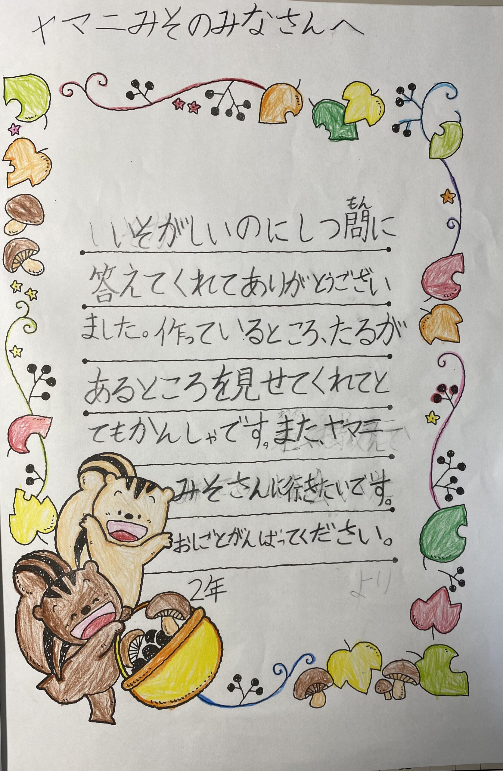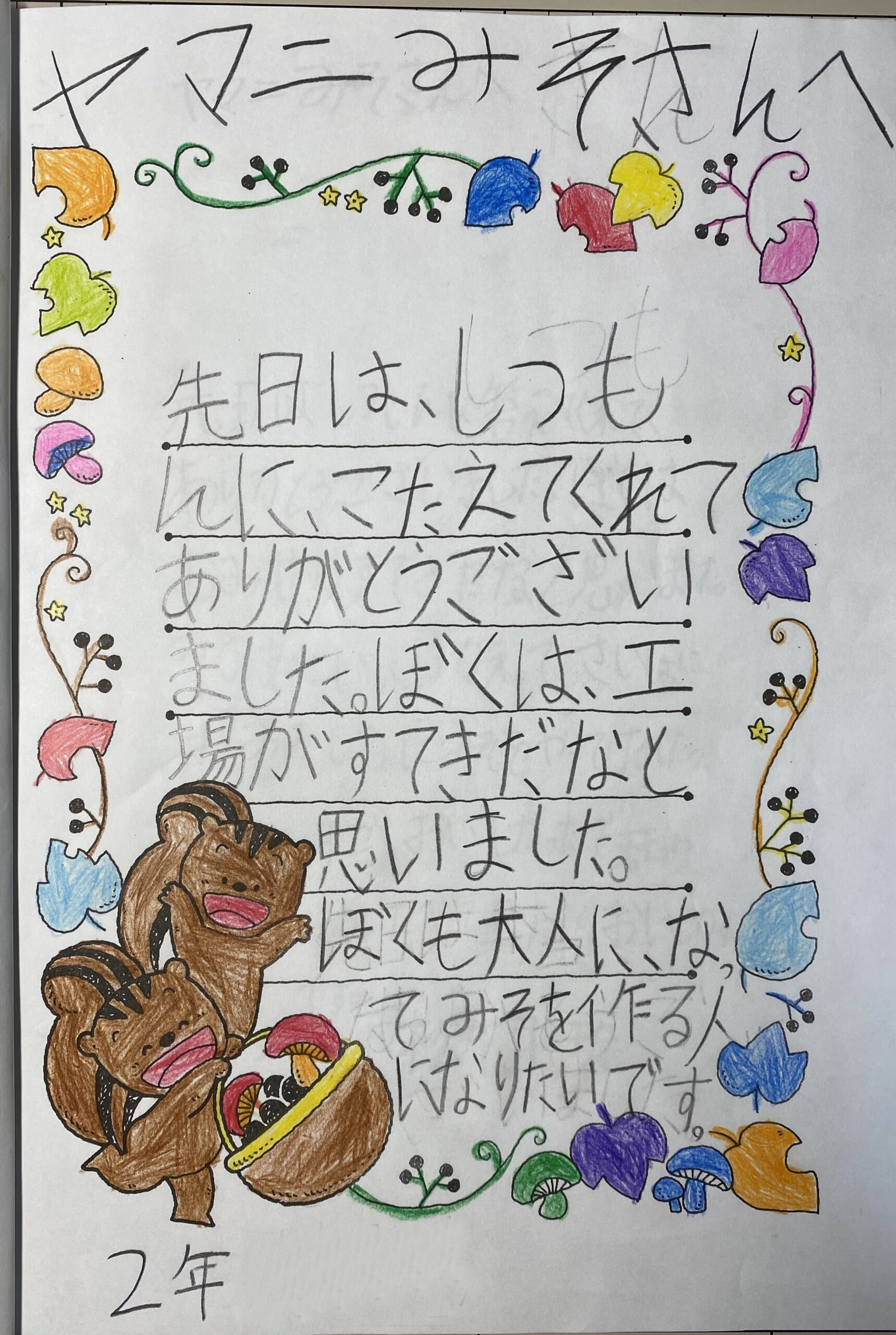 工場見学にいらした9名の生徒さんから、ありがたいお手紙が届きました。なかには、「大人になってみそを作る人になりたいです」と書いてくれた生徒さんもいらっしゃいました。